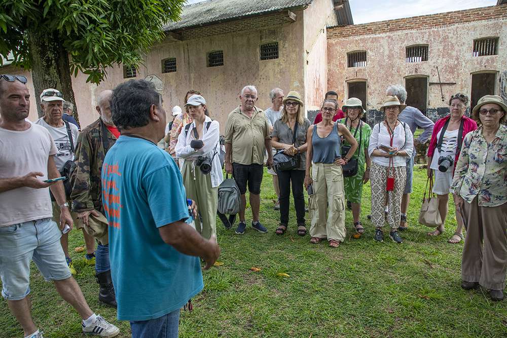 L’après-midi de notre visite, sous un soleil de plomb, nous avons écouté l’histoire glaciale des bagnes racontée par Claude Wayakalin, animateur de l’office du tourisme de Saint-Laurent-du-Maroni, une petite ville née du bagne devenue un lieu touristique. Si on veut résumer en deux mots ce que nous avons appris de notre guide ce jour-là, ce n’est pas très compliqué : les bagnes de Guyane, ce sont avant tout des chiffres et des procédures.