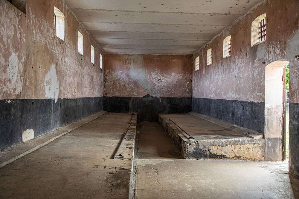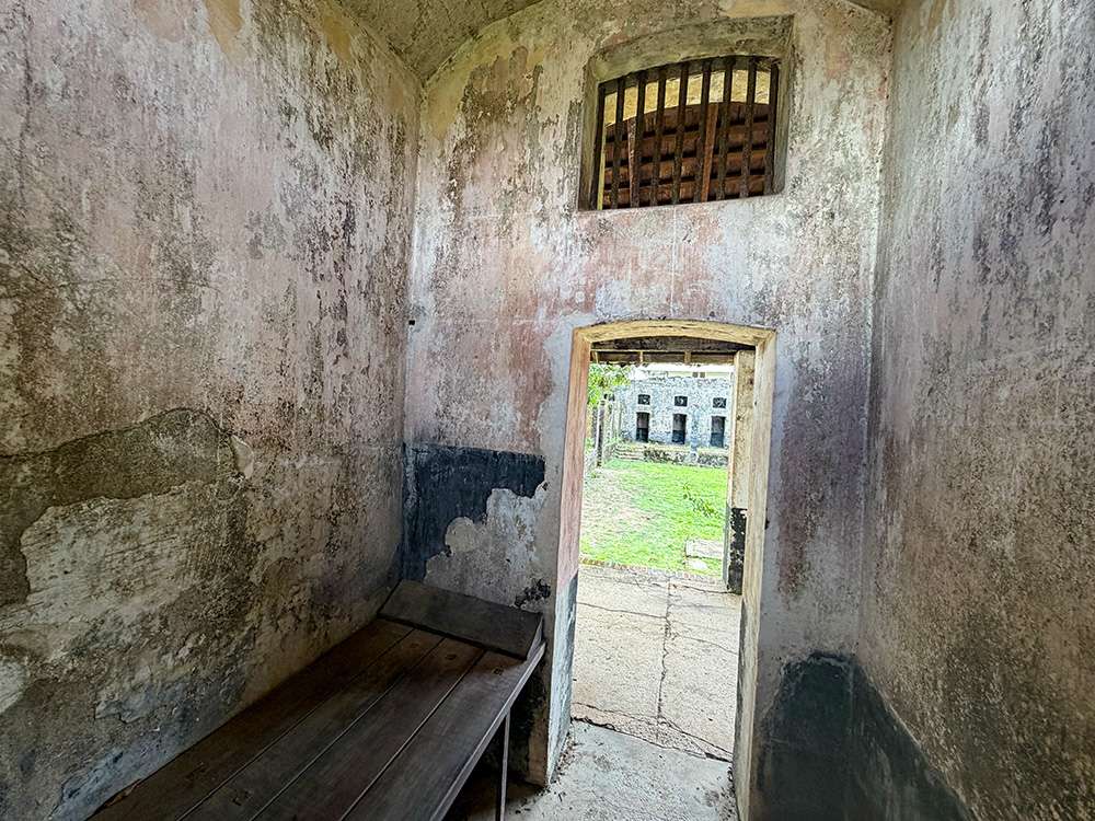 Des chiffres encore : « La cellule où nous sommes a été construite pour accueillir 40 bagnards, raconte-t-il. En fait, ils étaient très souvent 80 à vivre là, le double de la capacité prévue. C’était la même chose dans les autres bâtiments. » Les bat-flancs, faits de ciment et de briques, sont toujours là : les pierres traversent les siècles. « Les repose-têtes étaient aussi construits en dur, explique notre accompagnateur, et les bagnards passaient leurs nuits enfermés et entassés dans des conditions épouvantables, de 8 heures du soir à 5 heures du matin. » Au réveil, l’enfer continuait. « On leur donnait une heure pour faire leurs besoins et se laver au-dessus d’un seau d’eau mais c’était presque impossible car ils étaient trop nombreux dans chaque dortoir. »