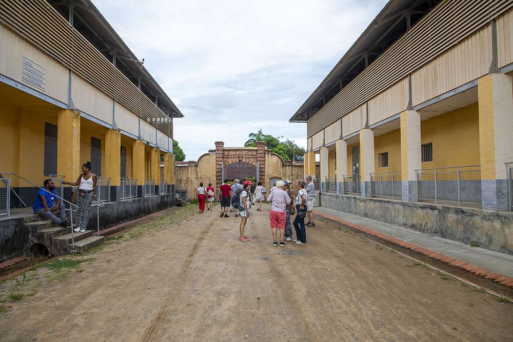 Au bout de deux ou trois semaines au camp de la Transportation, les forçats étaient répartis en groupes de travail et partaient pour l’un des 30 camps pénitentiaires de la colonie, ceux de Loulette, de la Montagne d’argent ou celui de Charvein, un chantier forestier disciplinaire où les conditions de vie étaient terribles. Les travaux forcés des transportés et des relégués étaient de toute sorte et toujours harassants : abattage des arbres, assainissement des marais ou fabrication de briques par milliers, qui serviront au fil des ans à édifier les maisons de Saint-Laurent. Les déportés, eux, étaient emmenés et isolés sur les îles du Salut par peur qu’ils déclenchent des mutineries. Quant aux chiffres, Claude les connaît par cœur : « Entre 1852 et 1953, 54 000 transportés, 300 déportés, 16 000 à 17 000 relégués sont passés au camp de Saint-Laurent. La plupart venaient de l’hexagone, 60 % environ et le reste des autres colonies françaises. » Puis il nous entraîne vers un des douze bâtiments : « venez avec moi, je vais vous montrer ce qu’était la vie des bagnards en arrivant ici. »