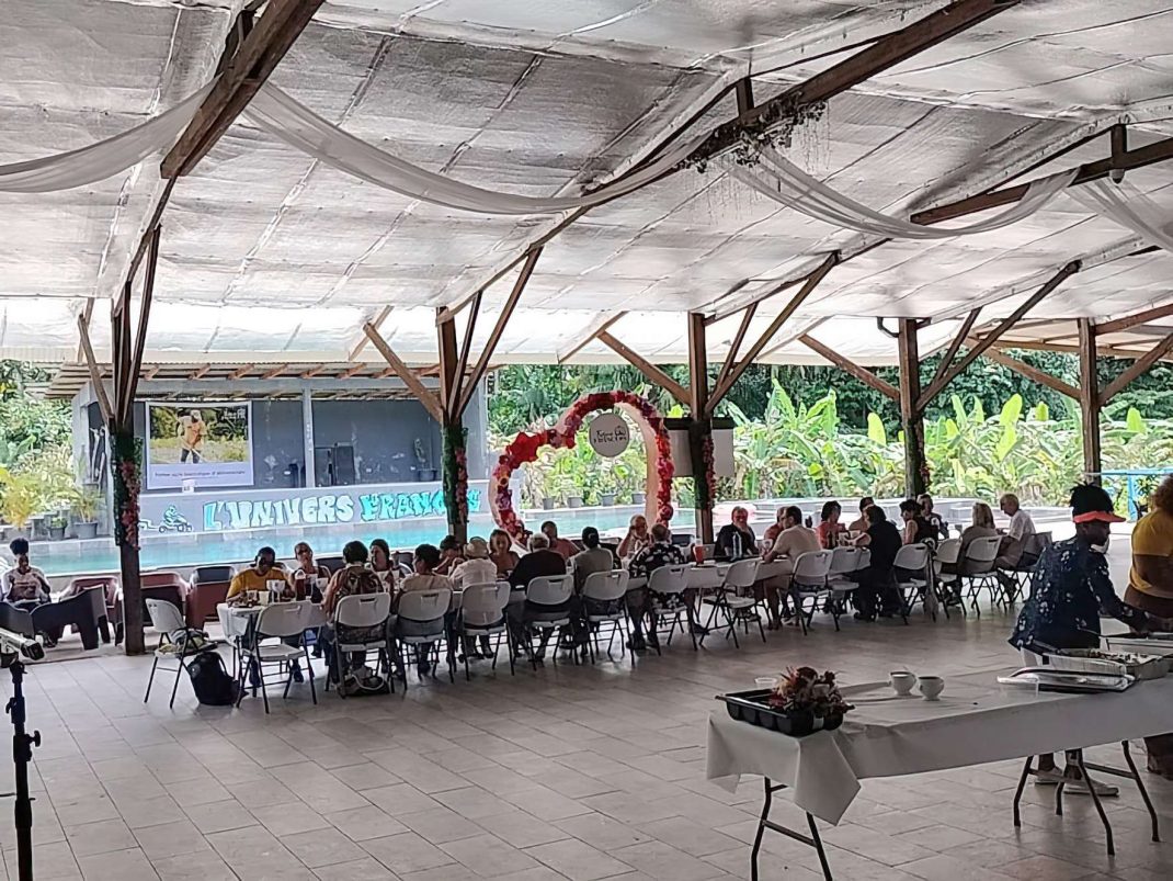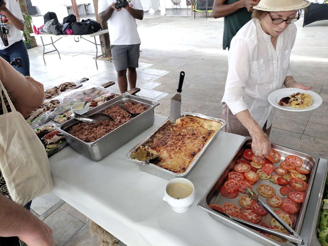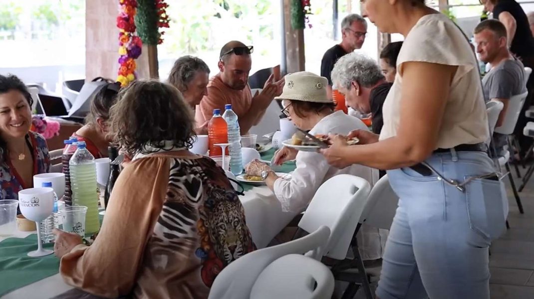 Le repas est prêt et il est temps de passer à table. Les mets, plus délicieux les uns que les autres, s’enchaînent. Les viandes boucanées ravivent nos papilles, accompagnées d’un délicieux gratin de dachines, un tubercule à chair blanche et savoureuse.